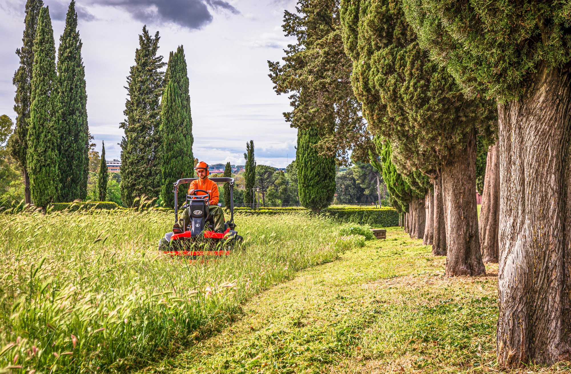 • nulles apgrieziena raideri (zero-turn) efektīvai lielu teritoriju apstrādei,